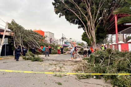 Los fuertes vientos generados la tarde del lunes por el frente frío número 41 ocasionaron la caída de por lo menos diez árboles, y el desprendimiento de un techo en la capital de Oaxaca provocando el ...