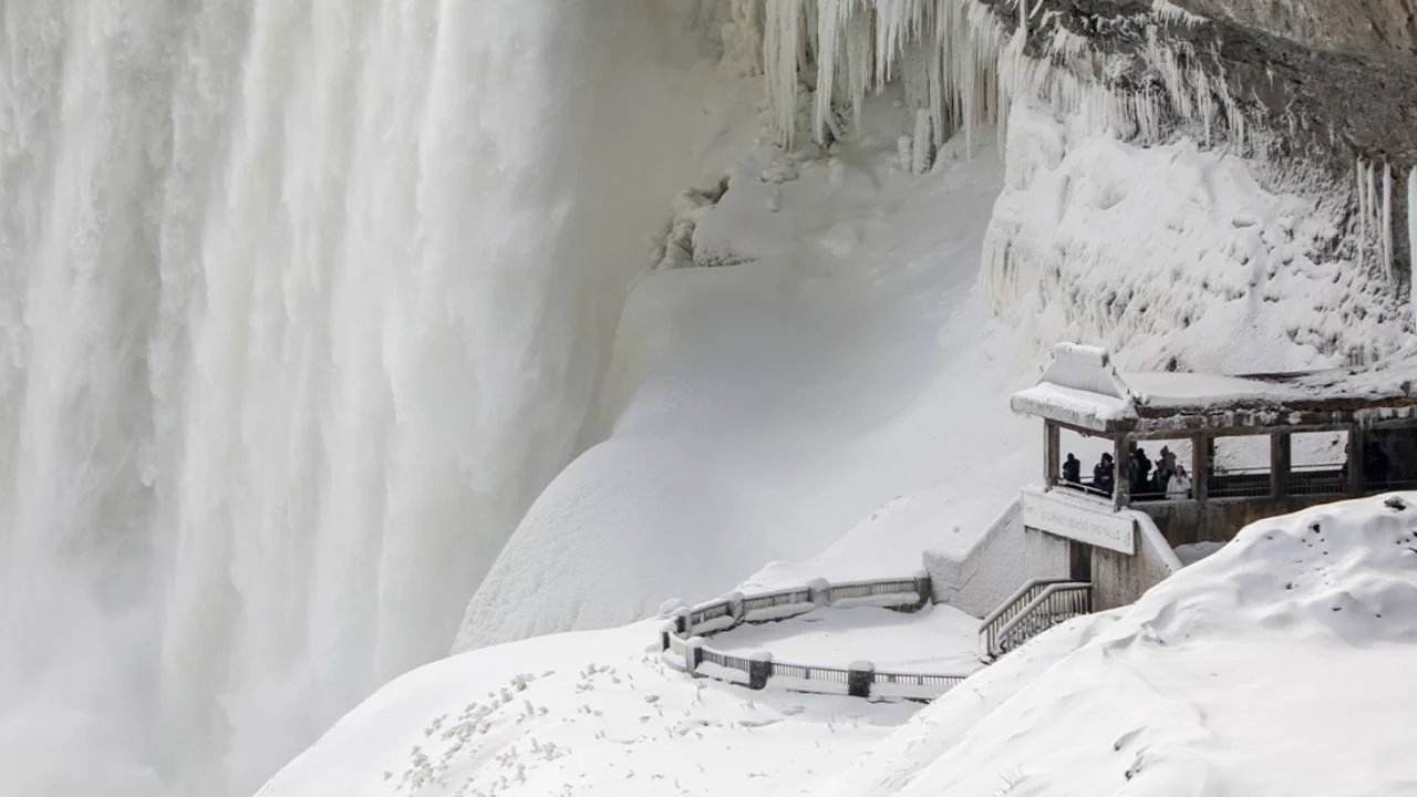 A pesar del intenso frío, en la localidad de Niagara Falls, este sábado los turistas seguían acudiendo para fotografiar las famosas cataratas, que en esta época de año están rodeadas por un paisaje congelado.