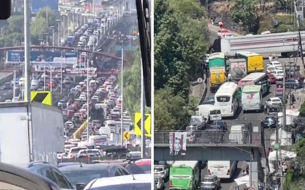 Durante la mañana y mediodía de este martes, el Periférico colapsó tanto en el norte como en el sur por diversos motivos: manifestaciones, repavimentación y averías de camiones pesados. Esto provocó tráfico intenso en distintas áreas de la capital y el Estado de México, por ejemplo, Naucalpan, Insurgentes y la carretera Picacho-Ajusco.