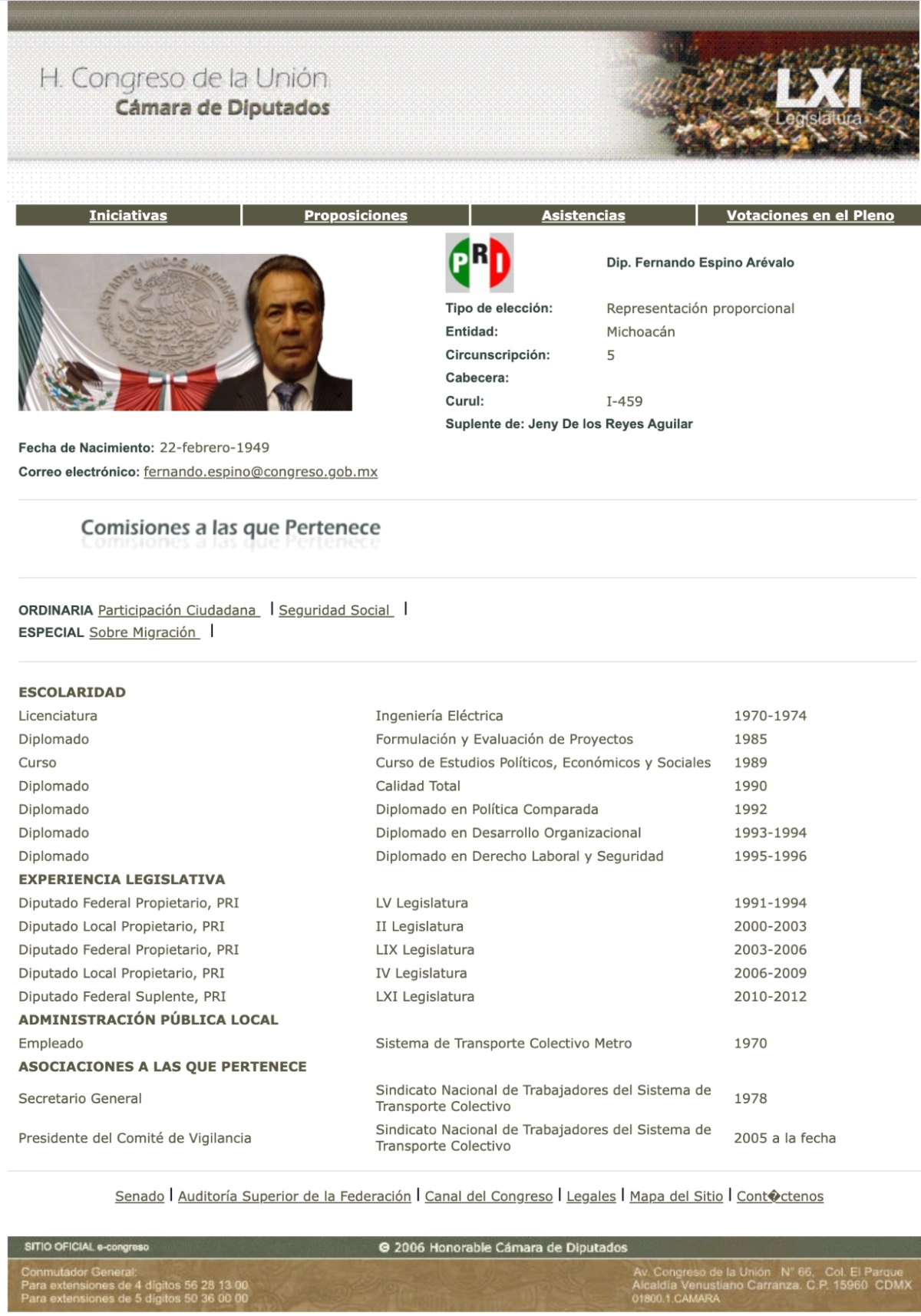 A partir de 1987 cuando se impuso en las elecciones sindicales excluyendo a una planilla opositora, Fernando Espino ha alternado los cargos de Secretario General del Sindicato y Presidente del Comité de Vigilancia y Presidente del Comité de Ejecutivo Nacional, rotación que le ha permitido burlar las prohibiciones contra la reelección sindical al mismo tiempo que se mantiene en el poder.