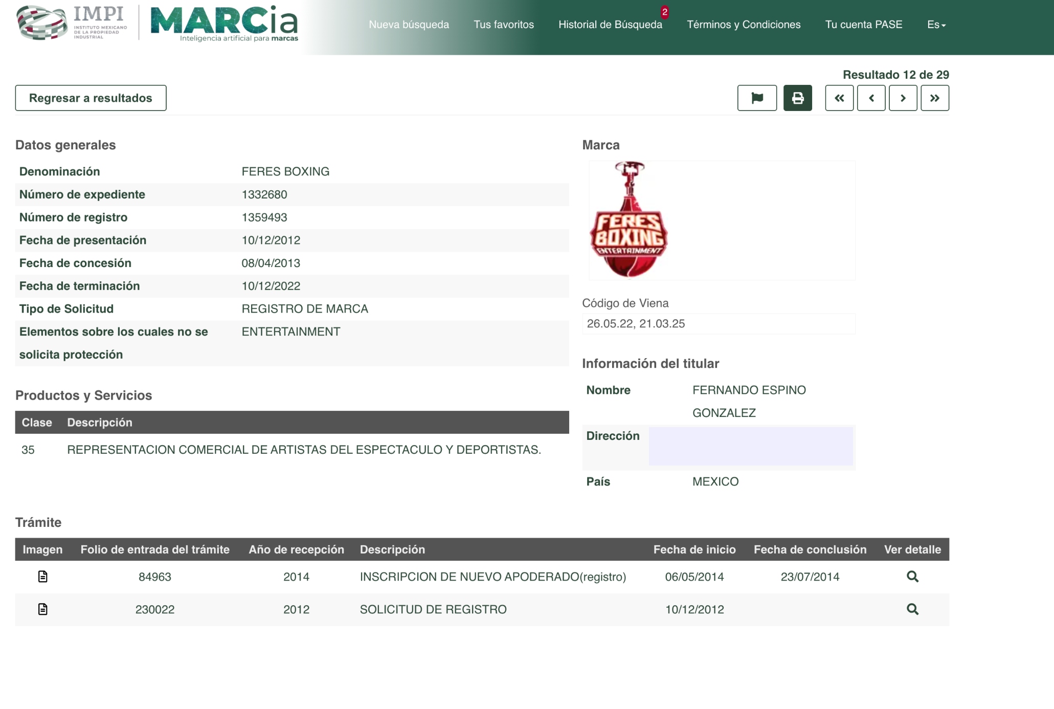 Fanático del boxeo, ha convertido el Deportivo de los Trabajadores del Metro en una arena para esta disciplina, por lo que incluso su hijo Fernando Espino González ha registrado varias marcas relacionadas con este deporte: el restaurante de hamburguesas Nokaut y una agencia para representar boxeadores amateur denominada Feres Boxing.