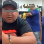 Detrás, otro vecino calificó a la funcionaria como prepotente, lo que detonó el enojo de los funcionarios con uniforme guinda, similar al del partido Morena.