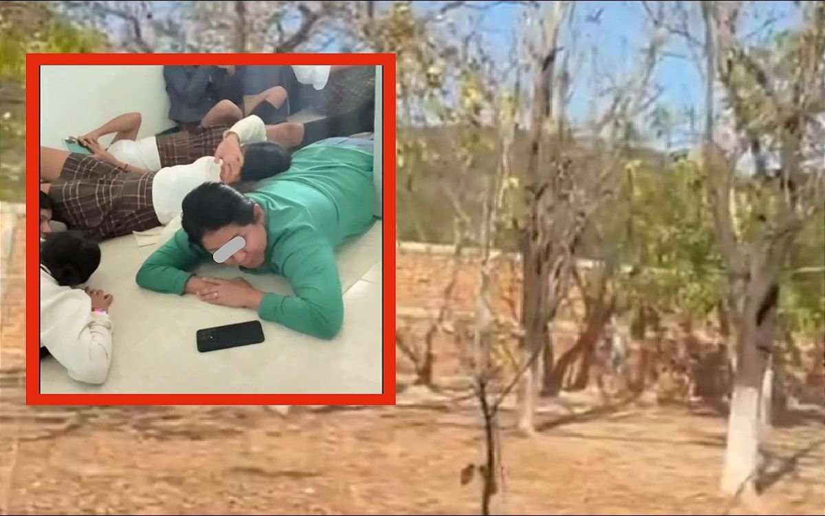En redes sociales circularon videos de estudiantes dentro del CBTA 248, quienes se resguardaron por temor a ser alcanzados por proyectiles. Algunos estudiantes se tiraron al suelo para protegerse.