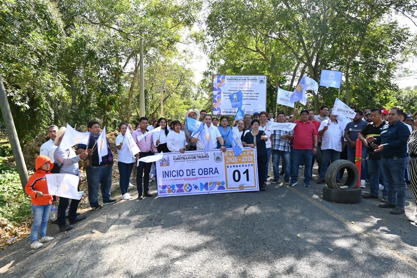 El H.Ayuntamiento de Castillo de Teayo informó que el Presidente Municipal, C. Obed Méndez Fernández, fue acompañado del Honorable Cuerpo Edilicio para dar el banderazo de construcción a la primera obra de la presente administración: la Rehabilitación de la carretera Tihuatlán – Castillo de Teayo (Socavón).