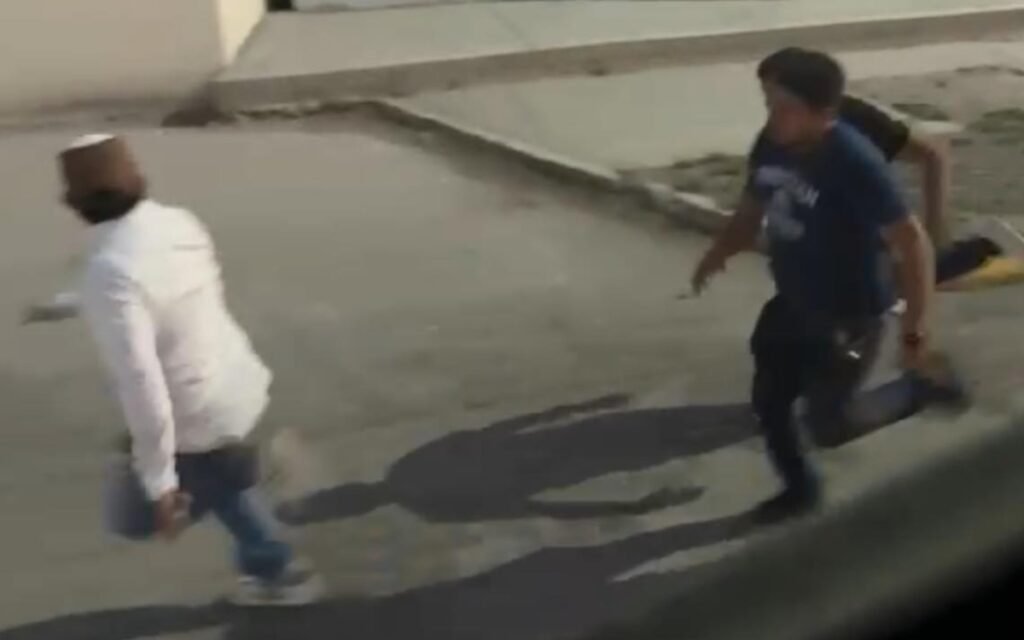En los videos se observa que personas que familiares y el acompañante del conductor agreden físicamente y persiguen al periodista.